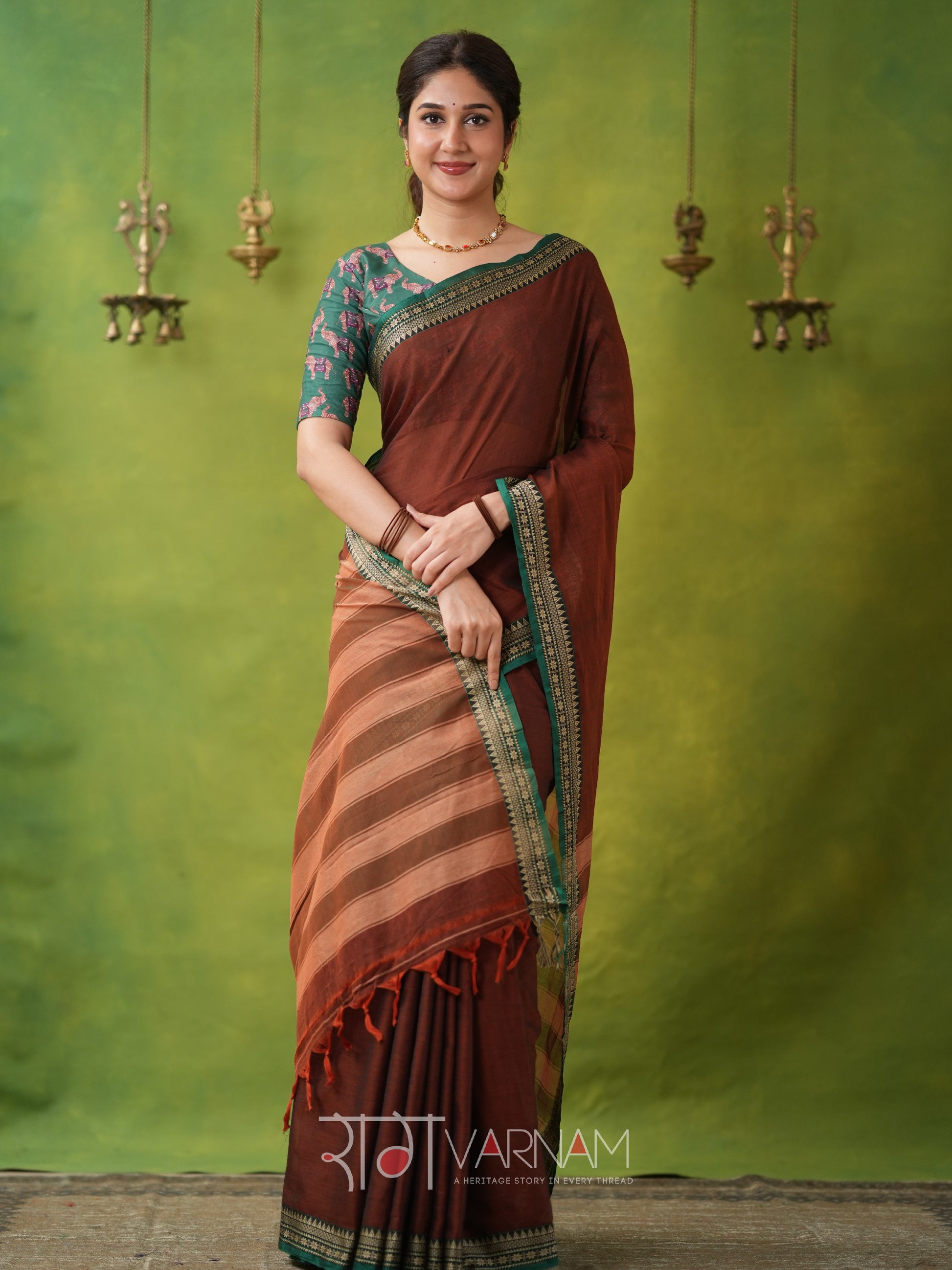 Narayanpet Brown Cotton Saree by Raag Varnam | Mercerized Finish With 2 Blouses Included