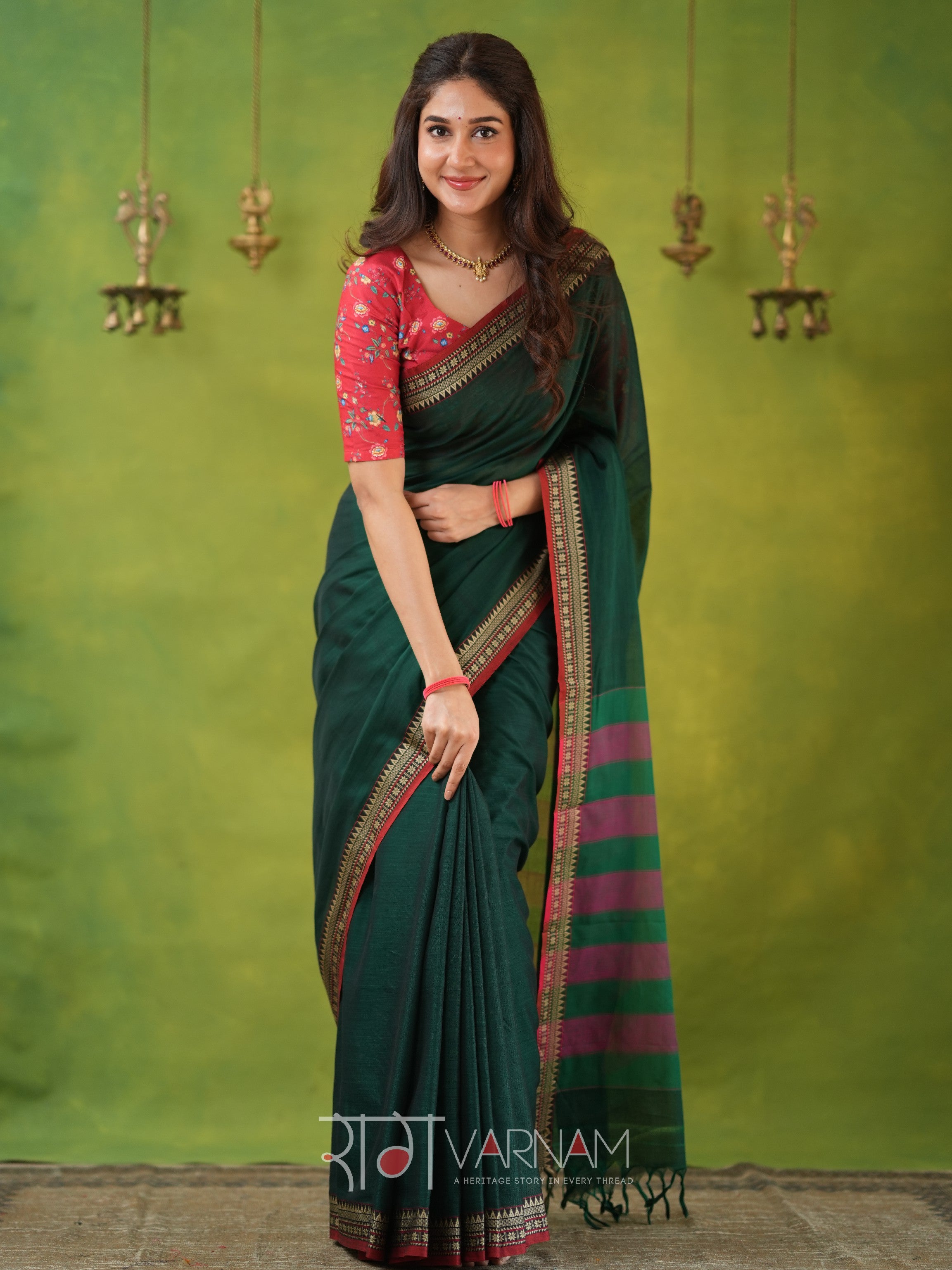 "Experience the beauty of traditional craftsmanship with this Narayanpet cotton saree, woven with precision and heritage techniques. The soft and breathable fabric ensures comfort, while the intricate woven border adds a touch of elegance. Perfect for festive occasions, office wear, or casual styling, this saree is a must-have for those who appreciate handwoven artistry.